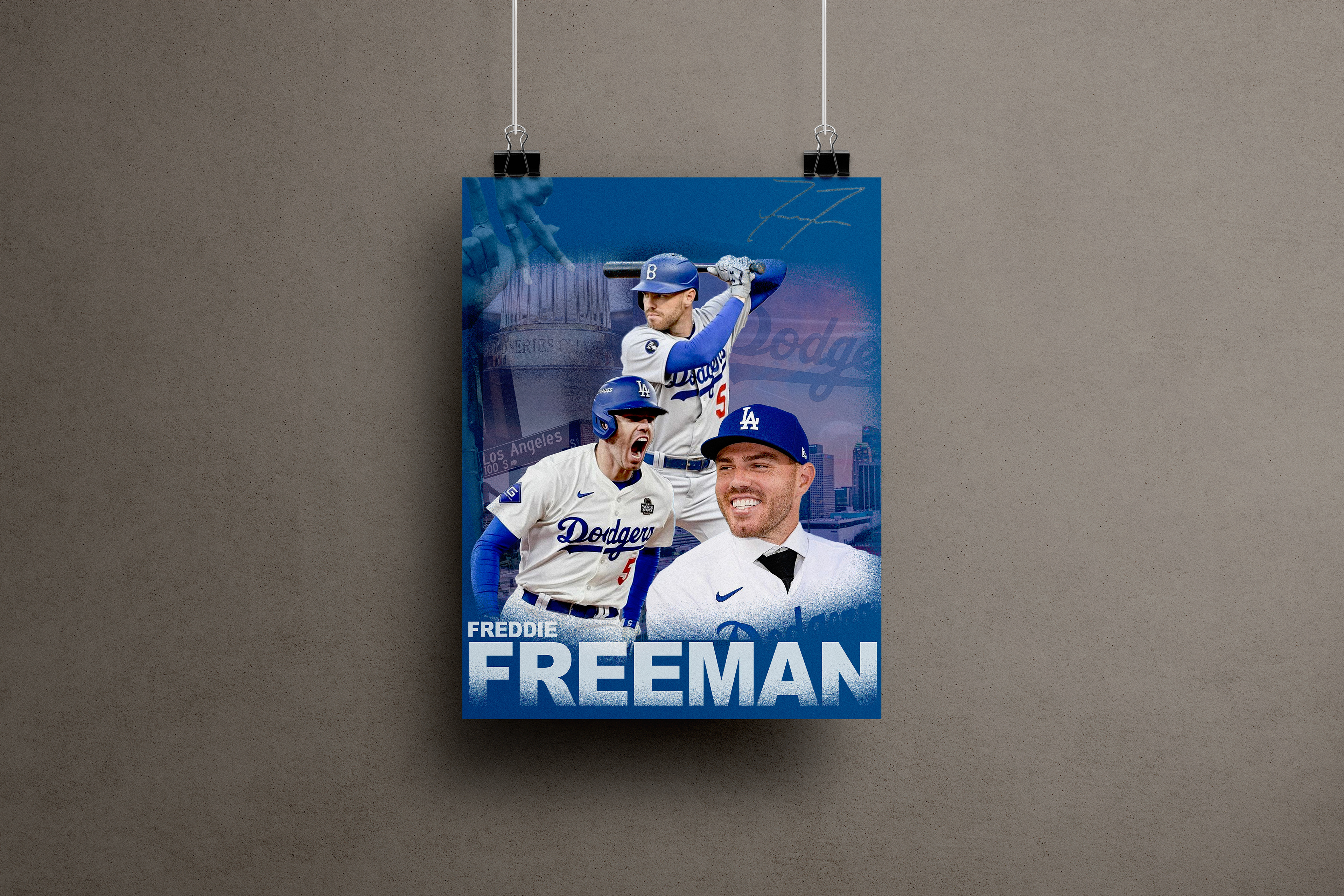 Concept: I created a poster highlighting Freddie Freeman from the Los Angeles Dodgers, and captured the essence of the city.